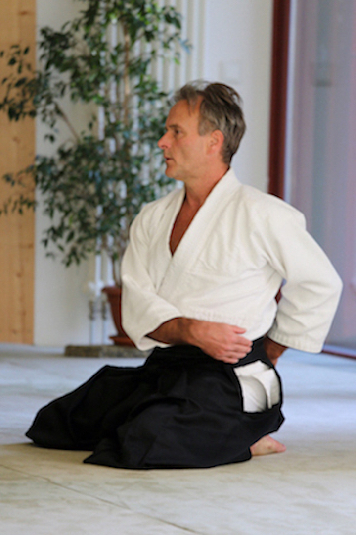 Beim Training ist der Gegner mein Partner, wir üben gemeinsam – nicht gegeneinander. Ich gehe mit meinem eigenen Körper und dem des Anderen so um, dass es uns gut tut. Wichtig ist nicht, besser zu sein als andere, sondern sich selbst kennen zu lernen. Bei sich selbst sein und wach für den Anderen. Dafür werden Körper und Geist gelockert, gedehnt, erwärmt. Man sagt, nur in einem starren Körper wohnt ein starrer Geist. Beim Aikido- Training geht es um das Üben von Beweglichkeit und Intuition, Timing und Standsicherheit. Und all das aus dem Zentrum des Körpers (Hara).